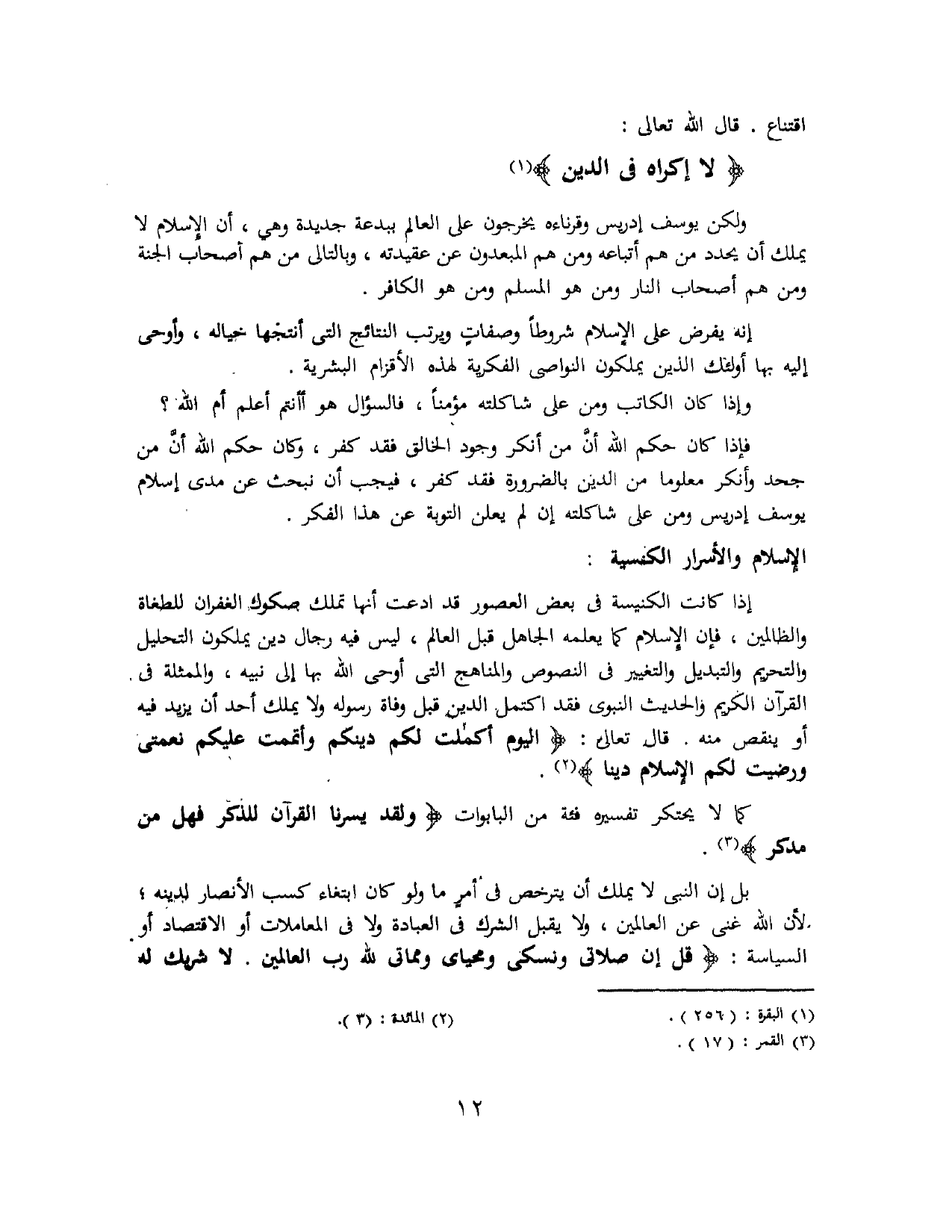ولكن يوسف إدريس وقرناءه يخرجون على العالم ببدعة جديدة وهي أن الإسلام لا يملك أن يحدد من هم أتباعه ومن هم المبعدون عن عقيدته، وبالتالي من هم أصحاب الجنة ومن هم أصحاب النار، ومن هو المسلم ومن هو الكافر.