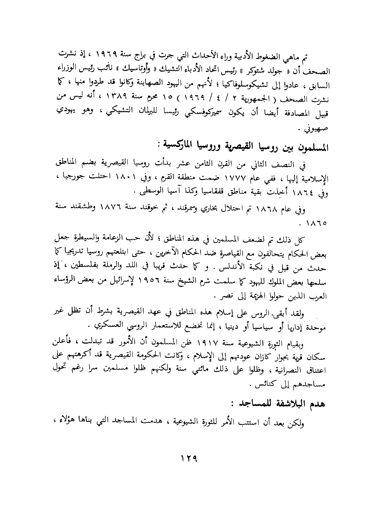 المُسْلِمُونَ بَيْنَ رُوسْيَا القَيْصَرِيَّةِ وَرُوسْيَا المَارْكْسِيَّةِ: