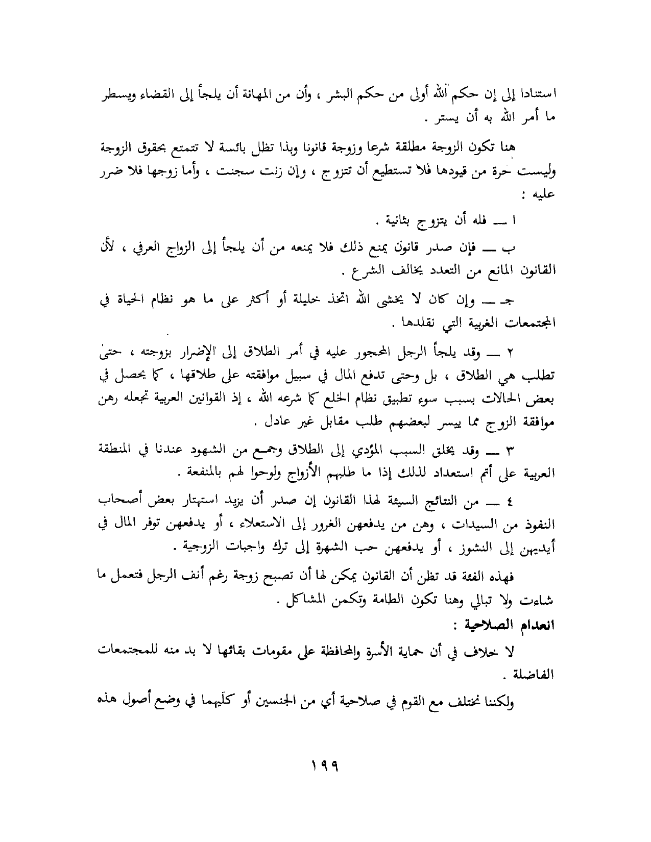 4 - من النتائج السيئة لهذا القانون إن صدر أن يزيد استهتار بعض أصحاب النفوذ من السيدات، وهن من يدفعهن الغرور إلى الاستعلاء، أو يدفعهن توفر المال في أيديهن إلى النشوز، أو يدفعهن حب الشهرة إلى ترك واجبات الزوجية.