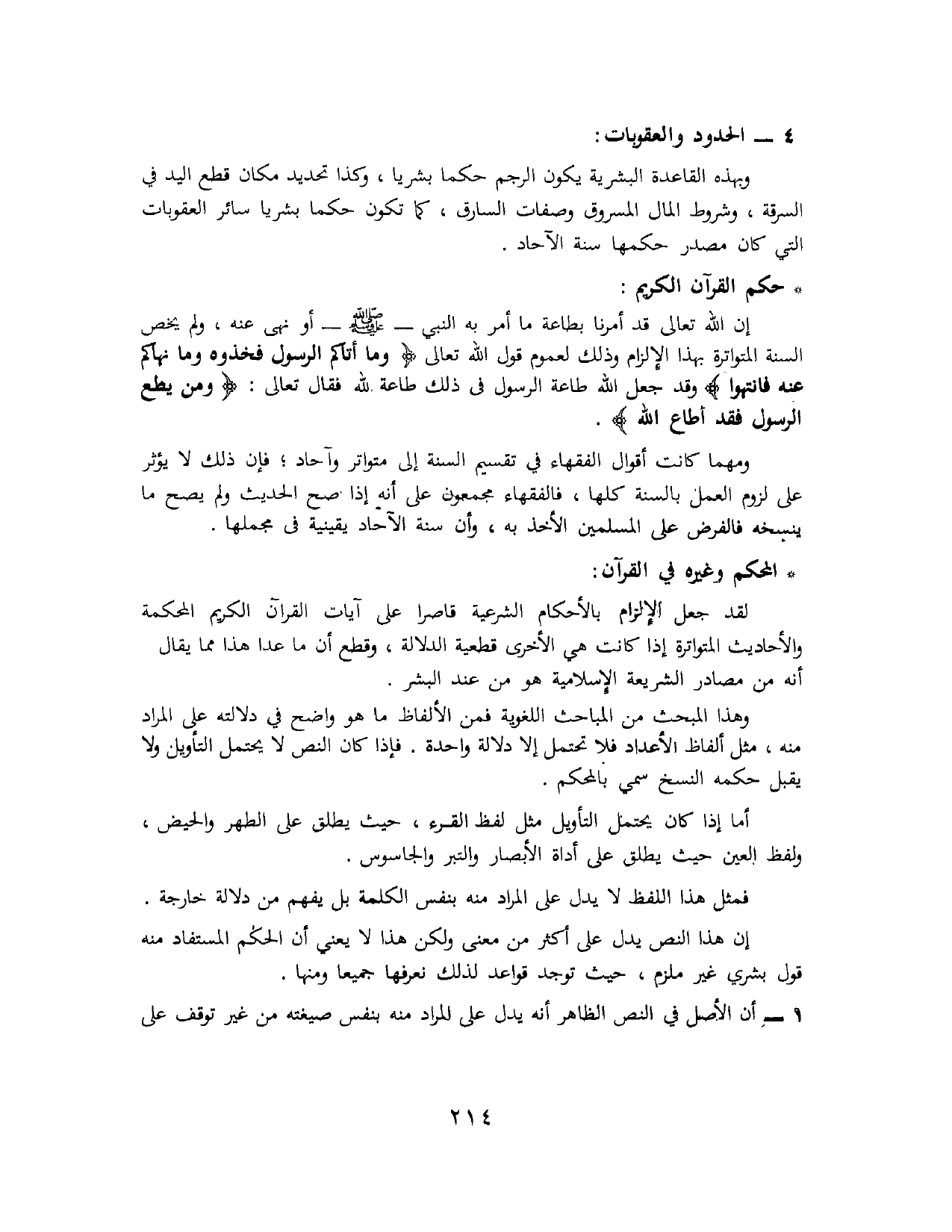 • حُكْمُ القُرْآنِ الكَرِيمِ: