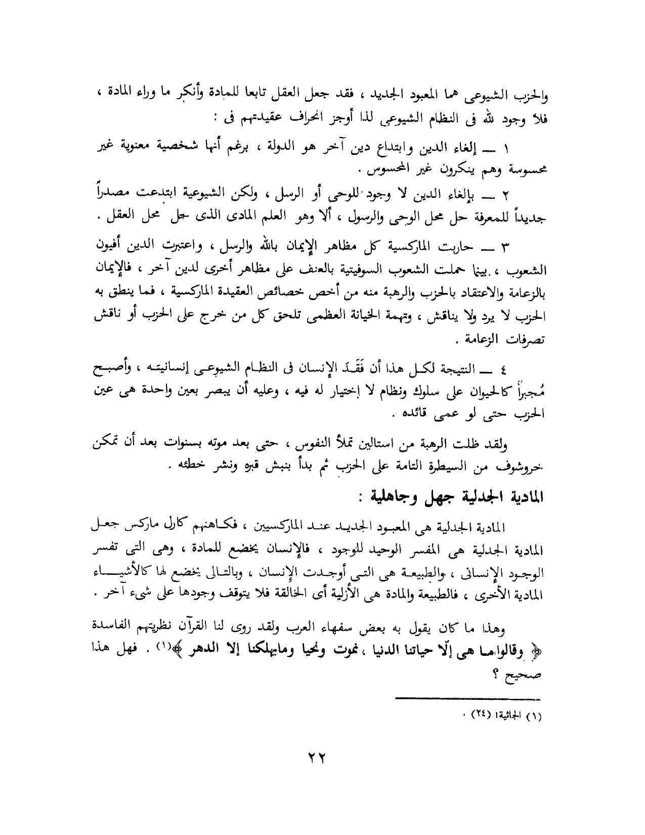 المَادِّيَّةُ الجَدَلِيَّةُ جَهْلٌ وَجَاهِلِيَّةٌ: