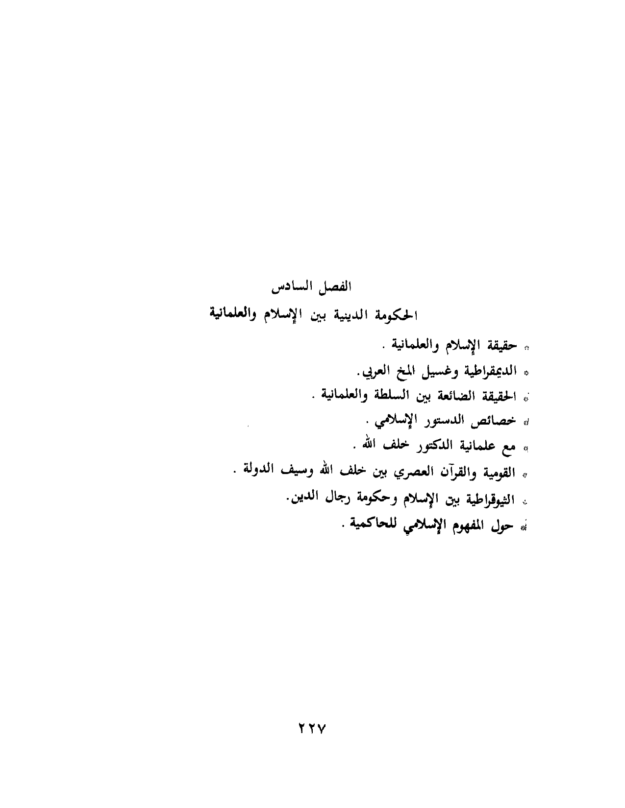 الفَصْلُ السَّادِسُ: الحُكُومَةُ الدِّينِيَّةُ بَيْنَ الإِسْلاَمِ وَالعِلْمَانِيَّةِ: