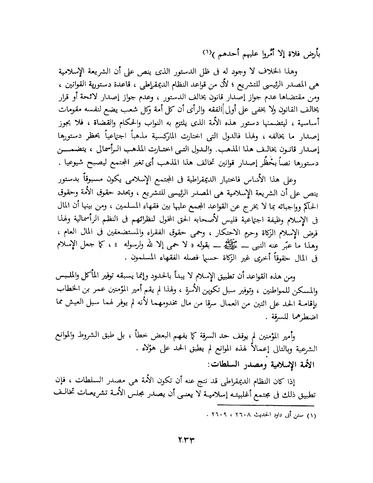 الأُمَّةُ الإِسْلاَمِيَّةِ وَمَصْدَرُ السُّلُطَاتِ: