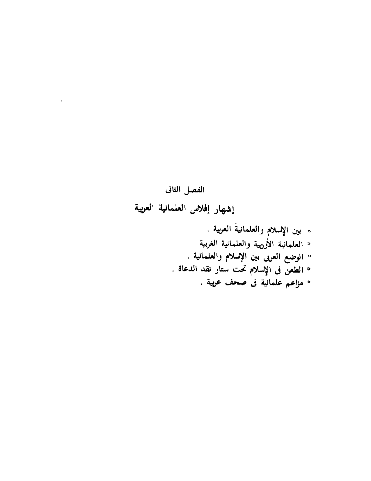 الفَصْلُ الثَّانِي: إِشْهَارُ إِفْلاَسِ العِلْمَانِيَّةِ العَرَبِيَّةِ: