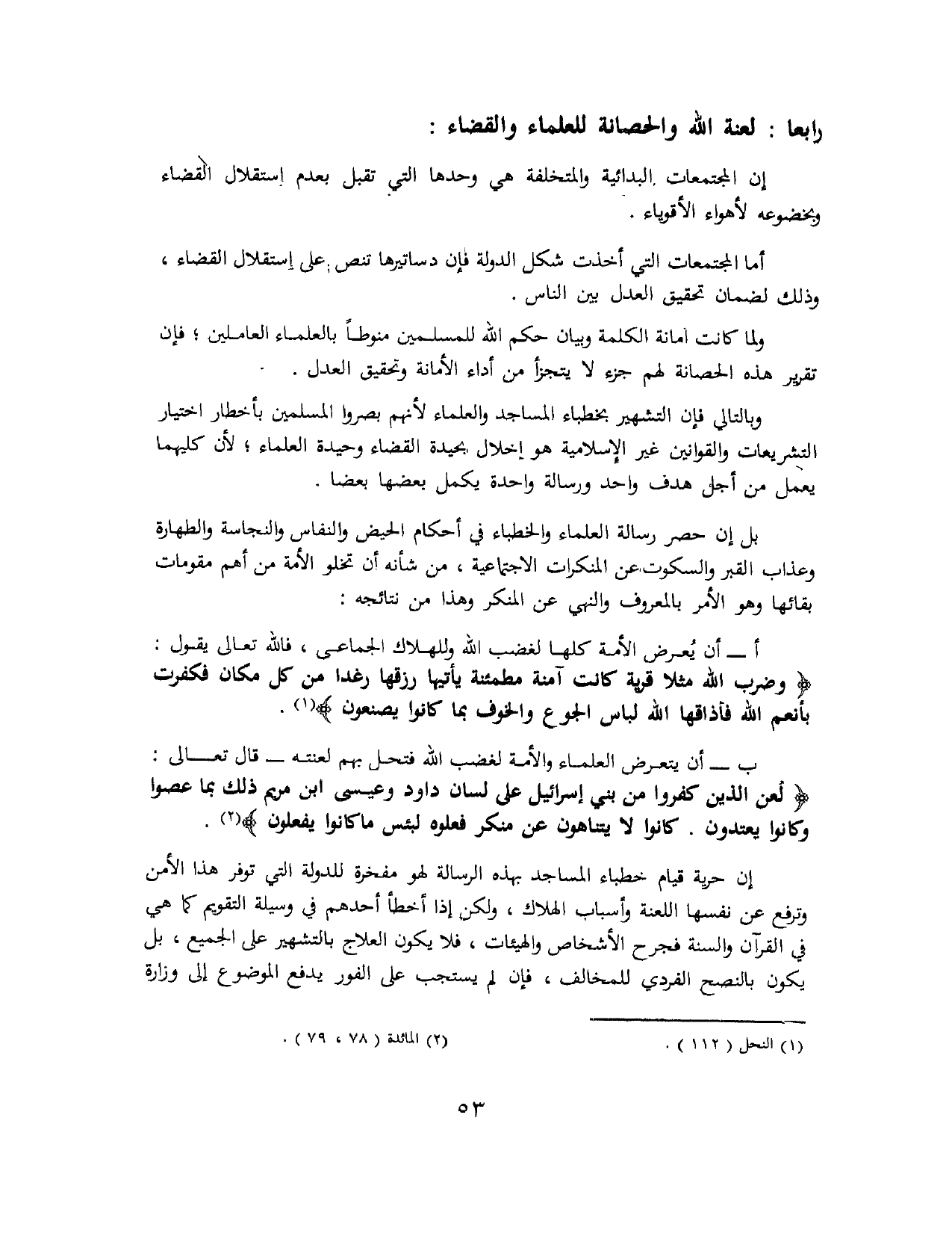 رَابِعًا: لَعْنَةُ اللهِ وَالحَصَانَةُ لِلْعُلَمَاءِ وَالقَضَاءِ: