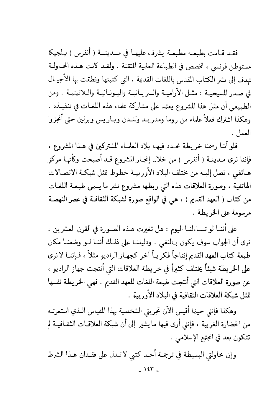نرى أن الجواب سوف يكون بالنفي. ودليلنا على ذلك أننا لو وضعنا مكان طبعة كتاب العهد القديم إنتاجاً فكرياً آخر كجهاز الراديو مثلاً، فإننا لا نرى على الخريطة شيئاً يختلف كثيرا في خريطة العلاقات التي أنتجت جهاز الراديو، عن صورة العلاقات التي أنتجت طبعة اللغات للعهد القديم. فهي الخريطة نفسها تمثل شبكة العلاقات الثقافية في البلاد الاوربية.