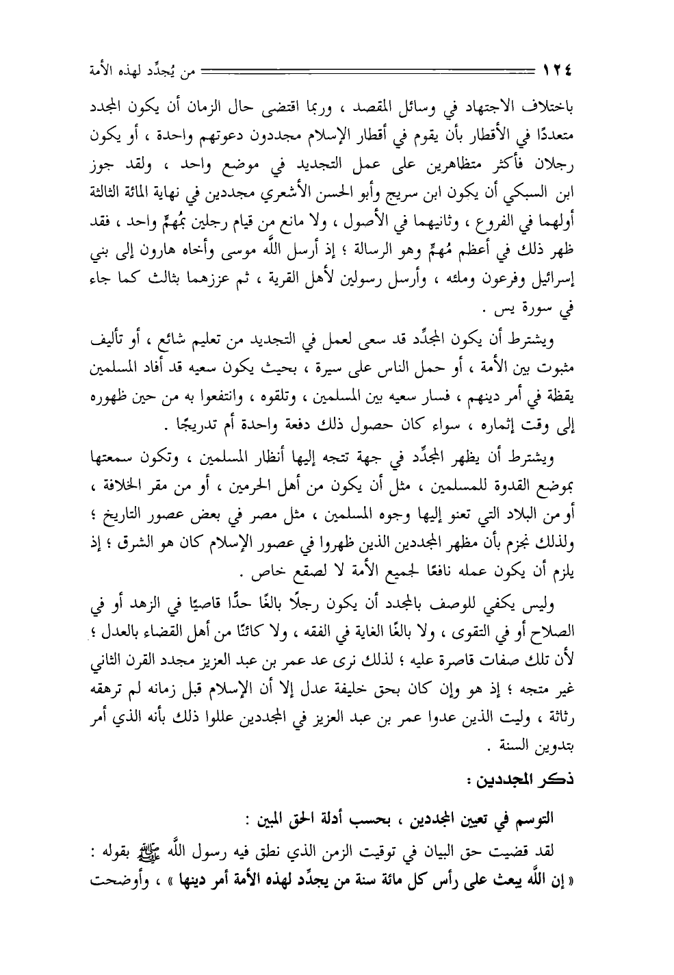 التوسم في تعيين المجددين، بحسب أدلة الحق المبين: