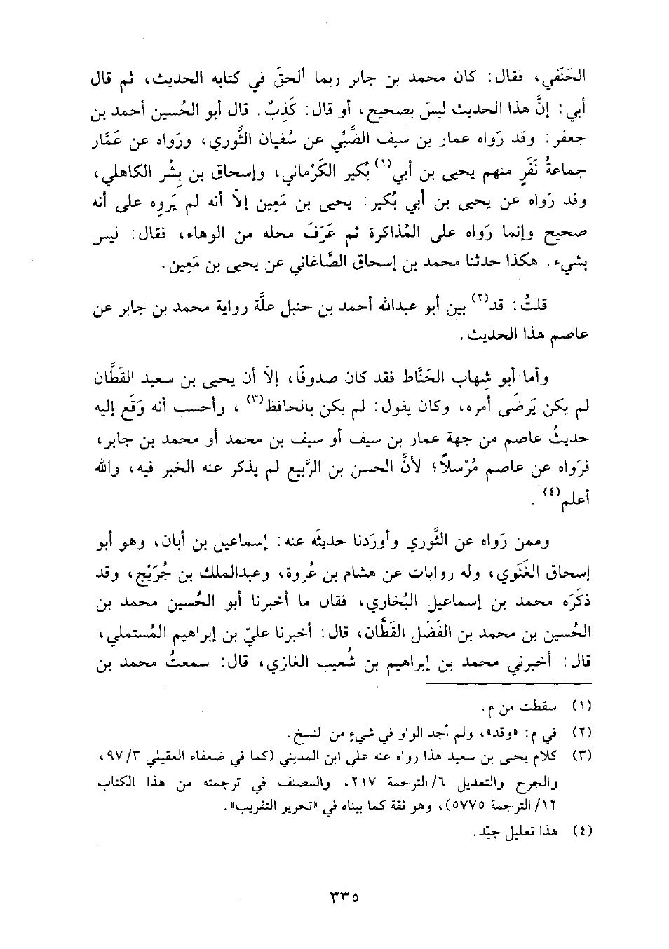 الحنفي، فقال: كان مُحَمَّد بْن جابر ربما ألحق في كتابه الحديث، ثم قَالَ أَبِي: إن هذا الحديث ليس بصحيح أو قَالَ: كذب.