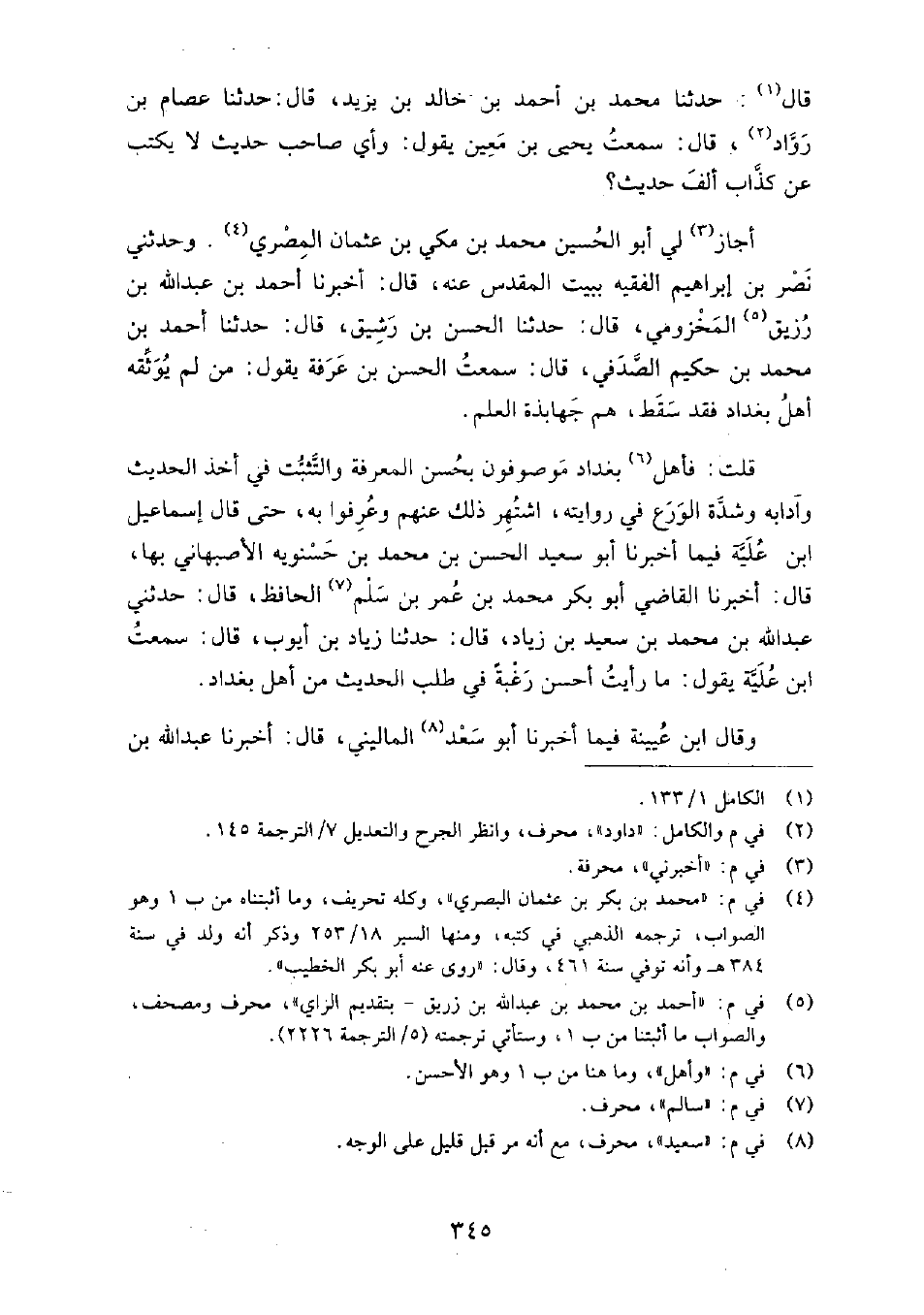 قلت: فأهل بغداد موصوفون بحسن المعرفة والتثبت في أخذ الحديث وآدابه وشدة الورع في روايته، اشتهر ذلك عنهم وعرفوا به، حتى قَالَ إسماعيل ابْن علية، فيما أَخْبَرَنَا أَبُو سعيد الْحَسَن بْن مُحَمَّد بْن حسنويه الأصبهاني، بها، قَالَ: أخبرنا الْقَاضِي أَبُو بكر مُحَمَّد بْن عُمَر بْن سلم الحافظ، قَالَ: حَدَّثَنِي عَبْد الله بْن مُحَمَّد بْن سعيد بْن زياد، قَالَ: حَدَّثَنَا زياد بْن أيوب، قَالَ: سمعت ابْن علية، يقول: ما رأيت أحسن رغبة في طلب الحديث من أهل بغداد.