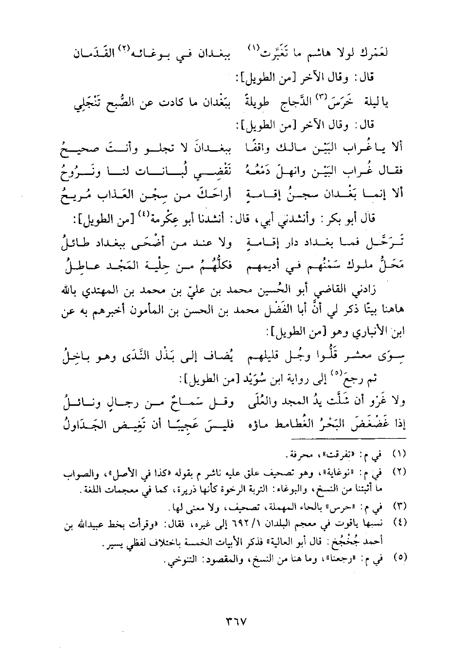 لعمرك لولا هاشم ما تغبرت ببغدان في بوغائه القدمان
