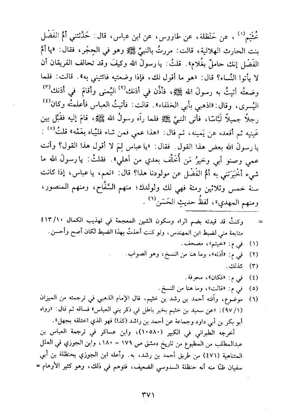 خَيْثَمٍ، عَنْ حَنْظَلَةَ، عَنْ طَاوُسٍ، عَنِ ابْنِ عَبَّاسٍ، قَالَ: حَدَّثَتْنِي أُمُّ الْفَضْلِ بِنْتُ الْحَارِثِ الْهِلالِيَّةِ، قَالَتْ: مَرَرْتُ بِالنَّبِيِّ صَلَّى اللَّهُ عَلَيْهِ وَسَلَّمَ وَهُوَ فِي الْحِجْرِ، فَقَالَ " يَا أُمَّ الْفَضْلِ إِنَّكِ حَامِلٌ بِغُلامٍ ".
