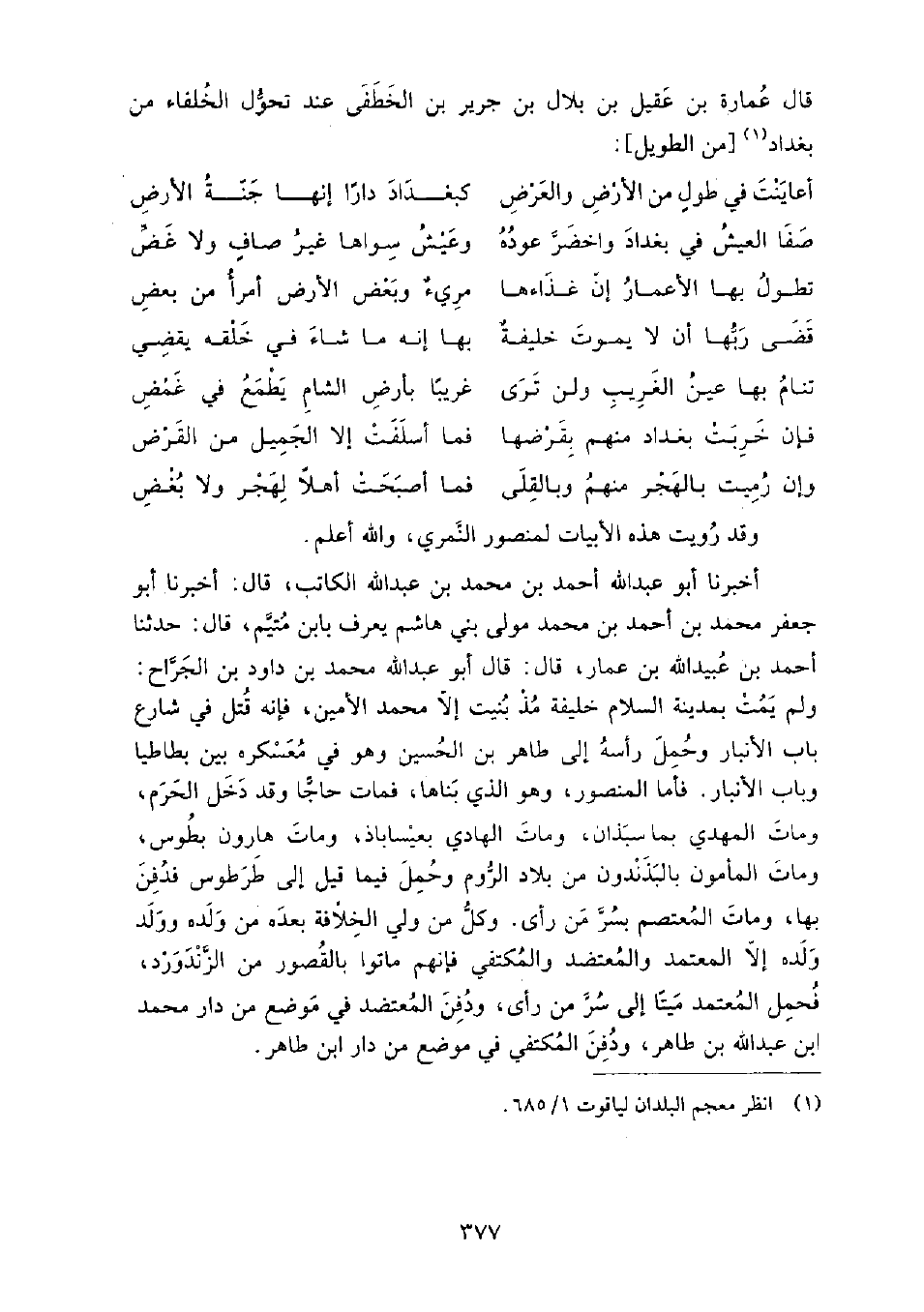 قَالَ عمارة بْن عقيل بْن بلال بْن جرير بْن الخطفى عند تحول الخلفاء من بغداد:
