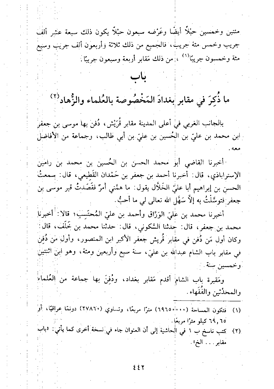 باب ما ذكر في مقابر بغداد المخصوصة بالعلماء والزهاد