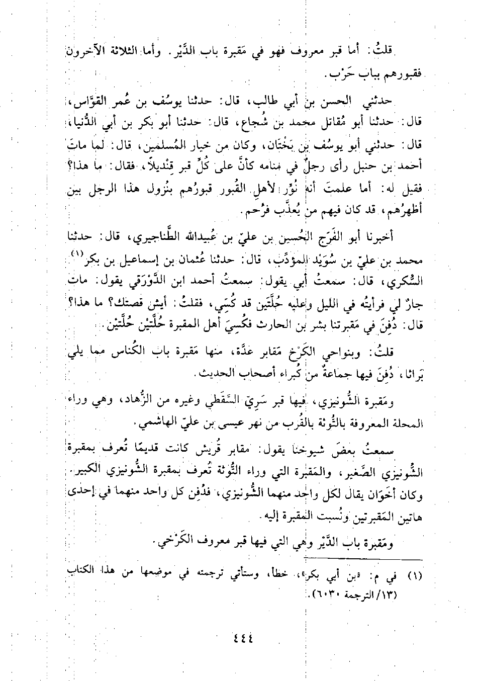 ومقبرة باب الدير، وهي التي فيها قبر معروف الكرخي.