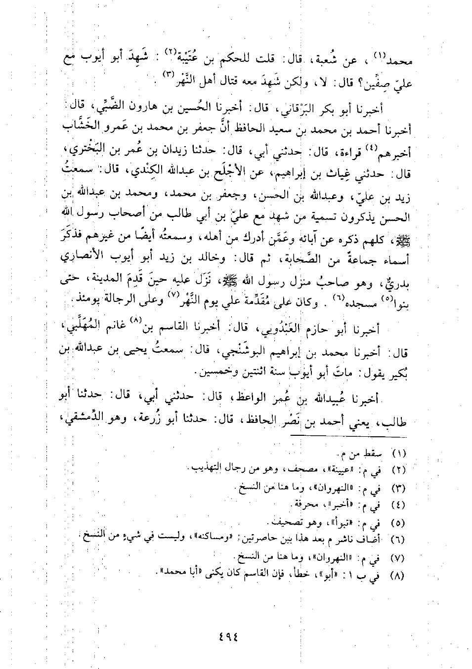 محمد، عَنْ شعبة، قَالَ: قلت للحكم بْن عتيبة: شهد أَبُو أيوب مع عَلِيّ صفين؟ قَالَ: لا، ولكن شهد معه قتال أهل النهر.