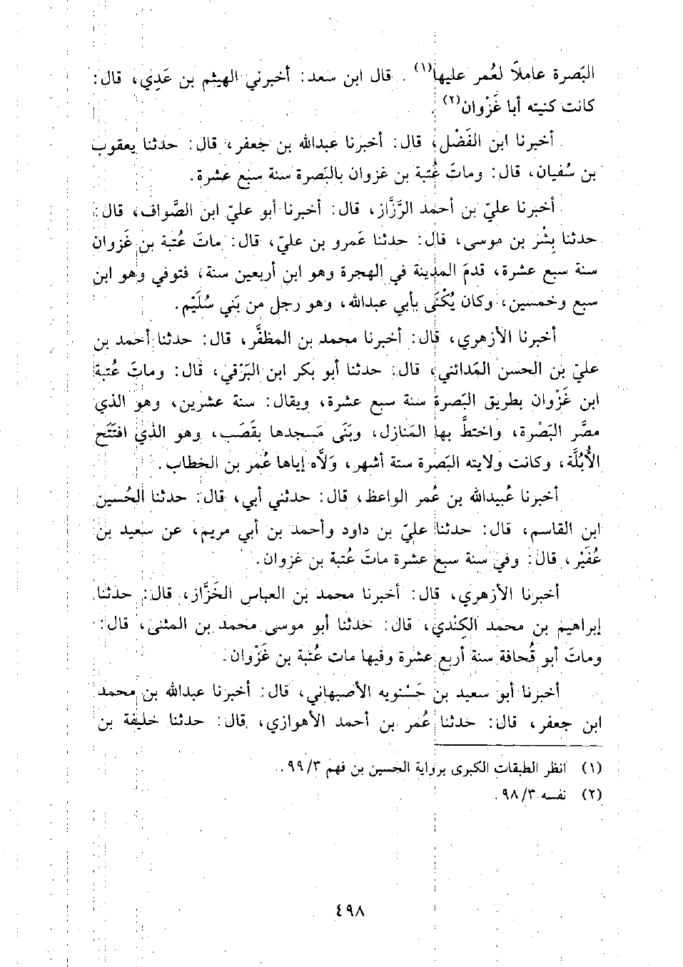 أَخْبَرَنَا أَبُو سعيد بْن حسنويه الأصبهاني، قَالَ: أَخبرنا عَبْدُ الله بْن مُحَمَّدِ بْن جَعْفَرٍ، قَالَ: حَدَّثَنَا عُمَر بْن أَحْمَد الأهوازي، قَالَ: حَدَّثَنَا خليفة بْن