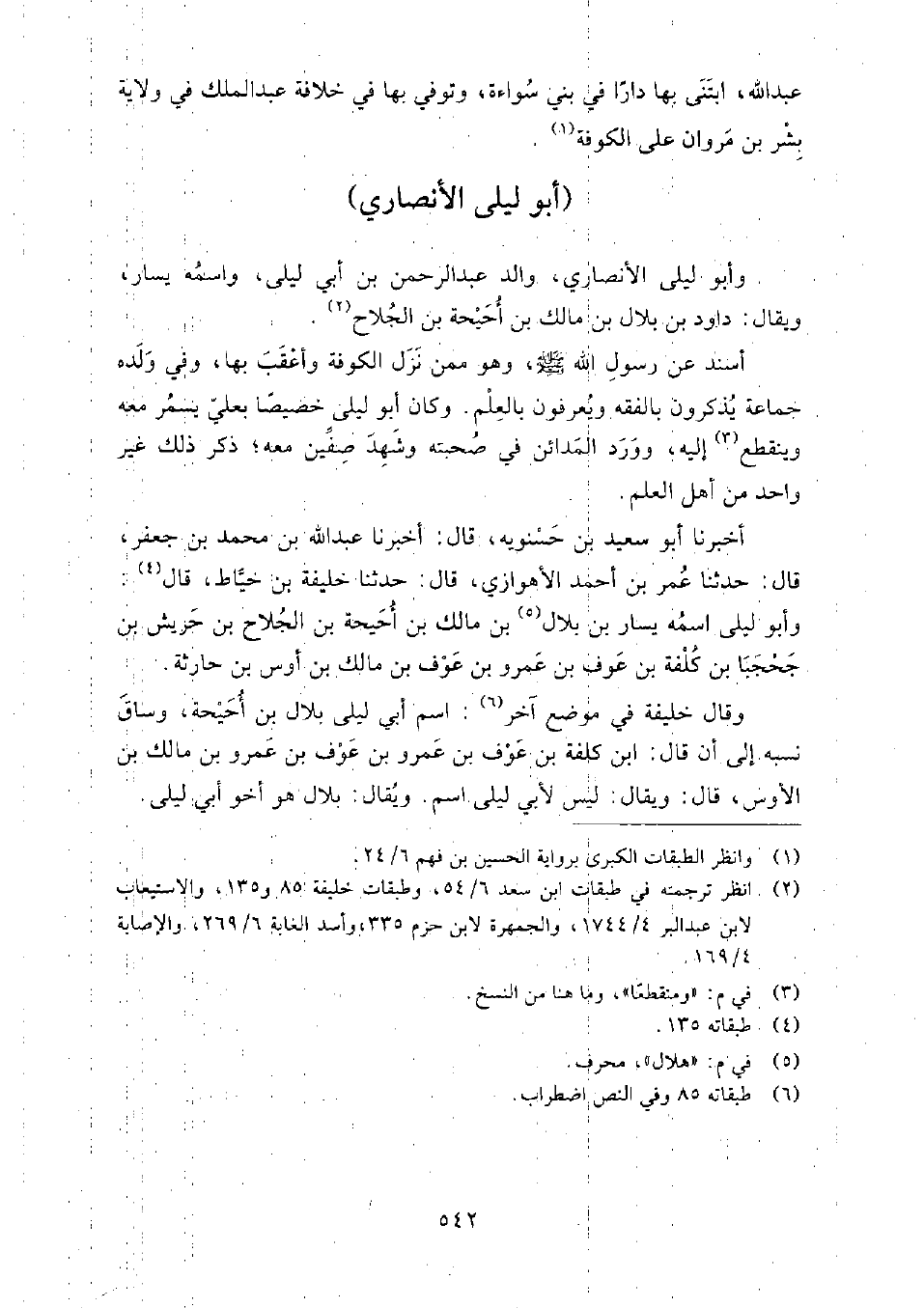 وَقَالَ خليفة في موضع آخر: اسم أَبِي ليلى بلال بْن أحيحة، وساق نسبه إِلَى أن قَالَ: ابْن كلفة بْن عوف بْن عمرو بْن عوف بْن عمرو بْن مالك بْن الأوس، قَالَ: ويقال: ليس لأبي ليلى اسم.