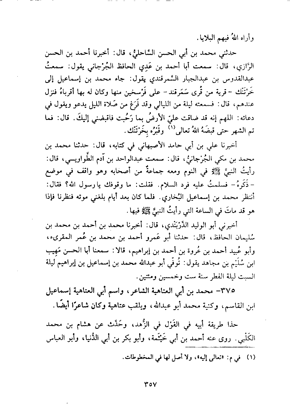 375 - محمد بن أبي العتاهية الشاعر، واسم أبي العتاهية إسماعيل بن القاسم، وكنيته محمد أبو عبد الله ويلقب عتاهية وكان شاعرا أيضا.