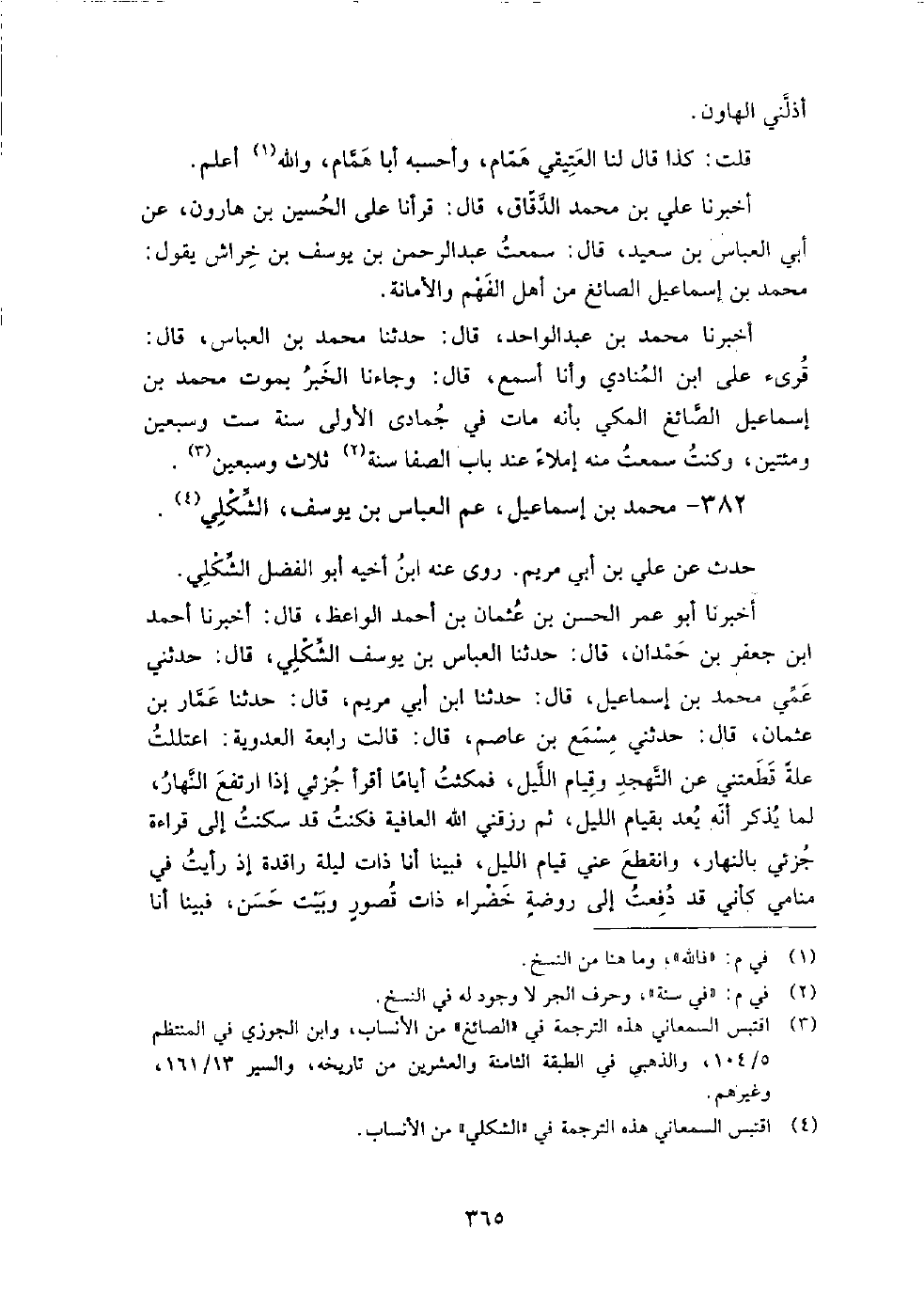 382 - محمد بن إسماعيل عم العباس بن يوسف الشكلي حدث عن علي بن أبي مريم.