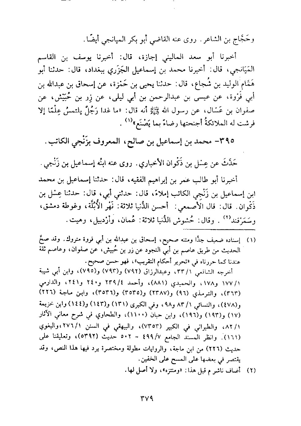 395 - محمد بن إسماعيل بن صالح المعروف بزنجي الكاتب حدث عن عسل بن ذكوان الأخباري.