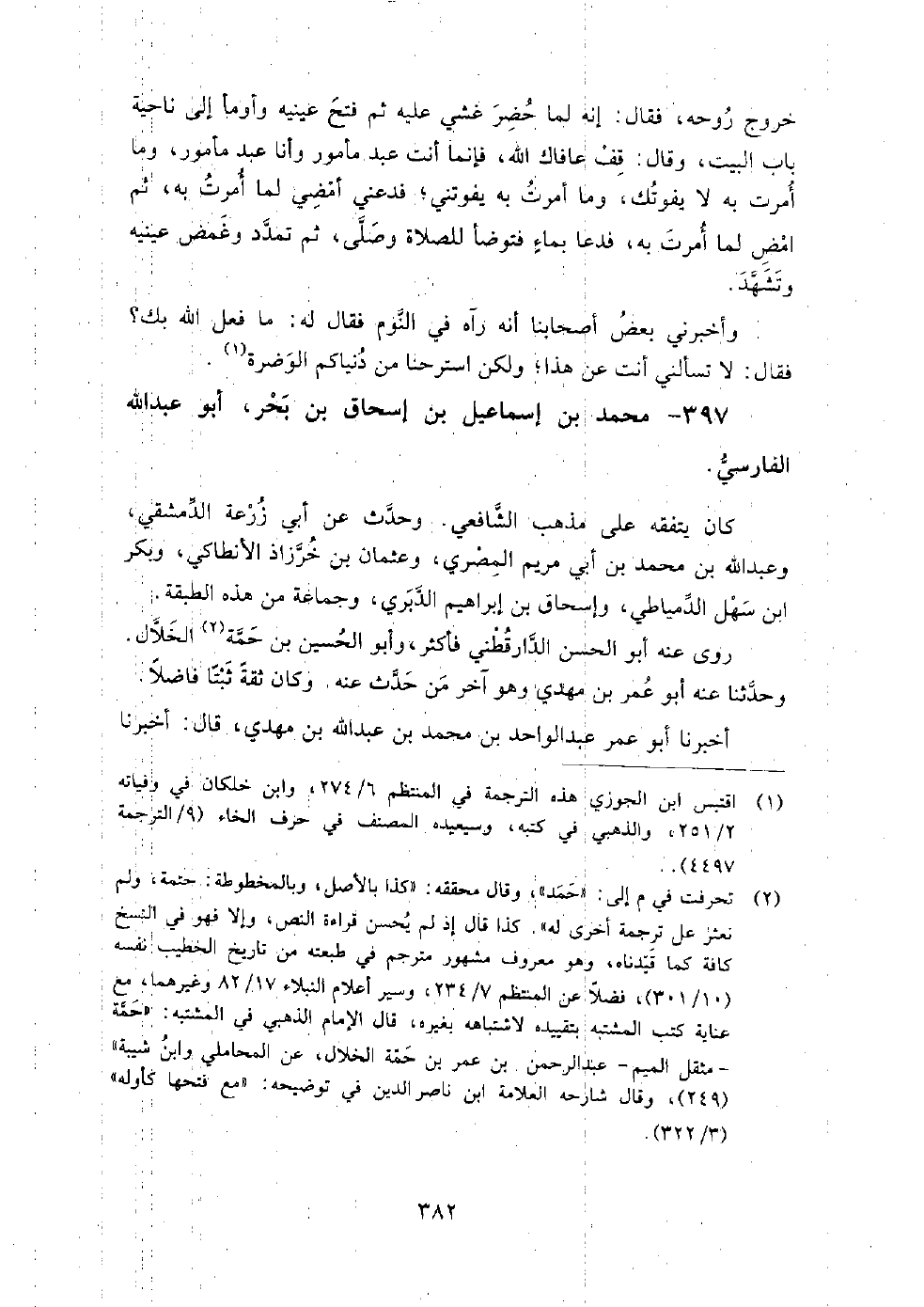 397 - محمد بن إسماعيل بن إسحاق بن بحر أبو عبد الله الفارسي كان يتفقه على مذهب الشافعي.
