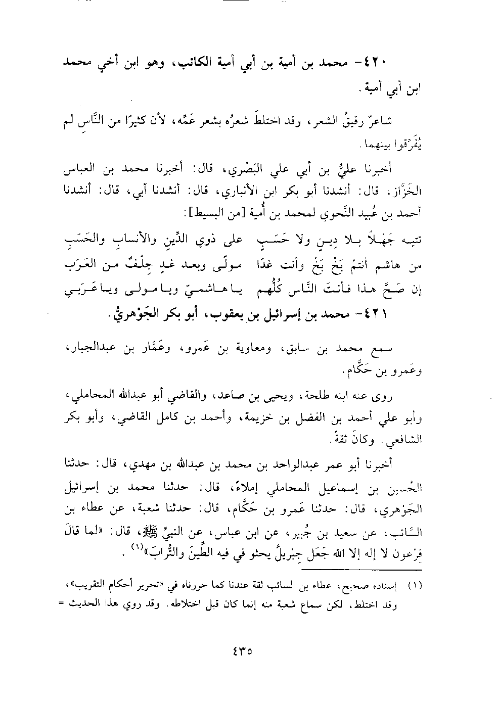 420 - محمد بن أمية بن أبي أمية الكاتب وهو ابن أخي محمد بن أبي أمية شاعر رقيق الشعر، وقد اختلط شعره بشعر عمه، لان كثيرا من الناس لم يفرقوا بينهما.