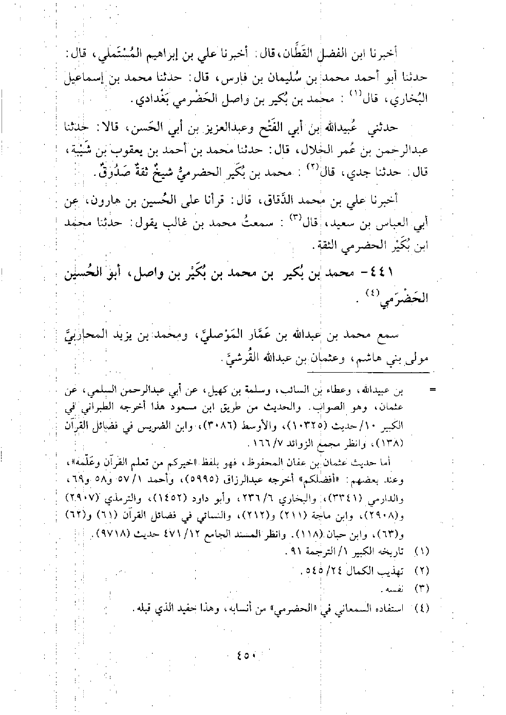 441 - محمد بن بكير بن محمد بن بكير بن واصل أبو الحسين الحضرمي سمع محمد بن عبد الله بن عمار الموصلي، ومحمد بن يزيد المحاربي مولى بني هاشم وعثمان بن عبد الله القرشي.