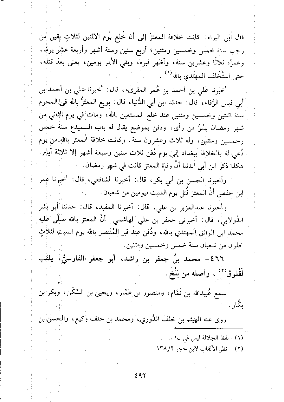 466 - محمد بن جعفر بن راشد أبو جعفر الفارسي يلقب لقلوق وأصله من بلخ، سمع عبيد الله بن تمام، ومنصور بن عمار، ويحيى بن السكن، وأبو بكر بن بكار.