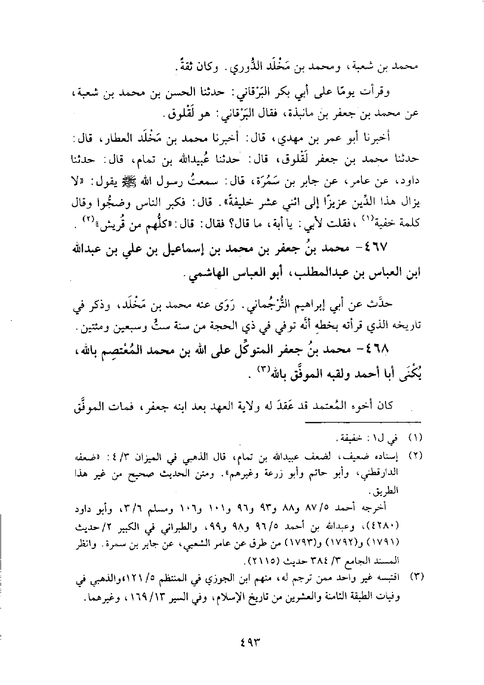 468 - محمد بن جعفر المتوكل على الله بن محمد المعتصم بالله، يكنى أبا أحمد ولقبه الموفق بالله كان أخوه المعتمد قد عقد له ولاية العهد بعد ابنه جعفر، فمات الموفق قبل موت المعتمد بسنة وأشهر.