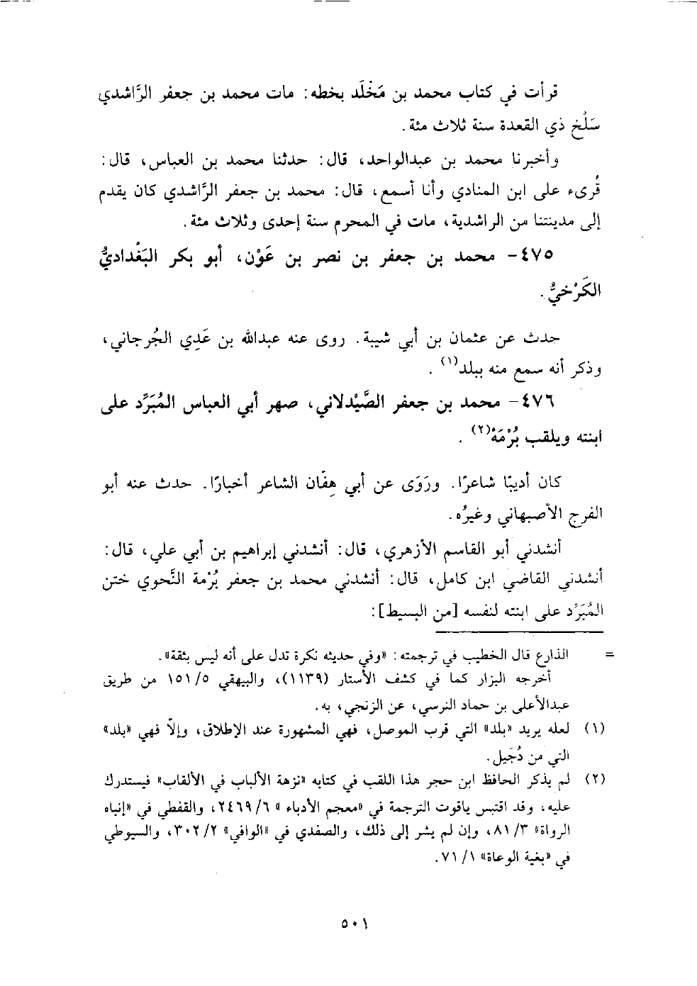 476 - محمد بن جعفر الصيدلاني صهر أبي العباس المبرد على ابنته، ويلقب برمه كان أديبا شاعرا.