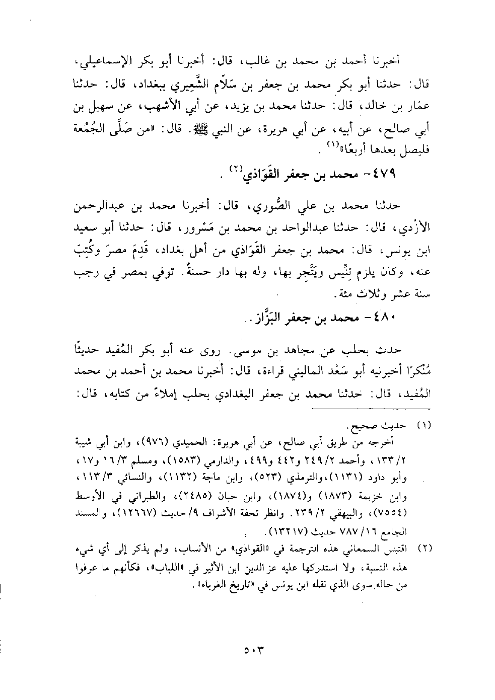 480 - محمد بن جعفر البزاز حدث بحلب عن مجاهد بن موسى.