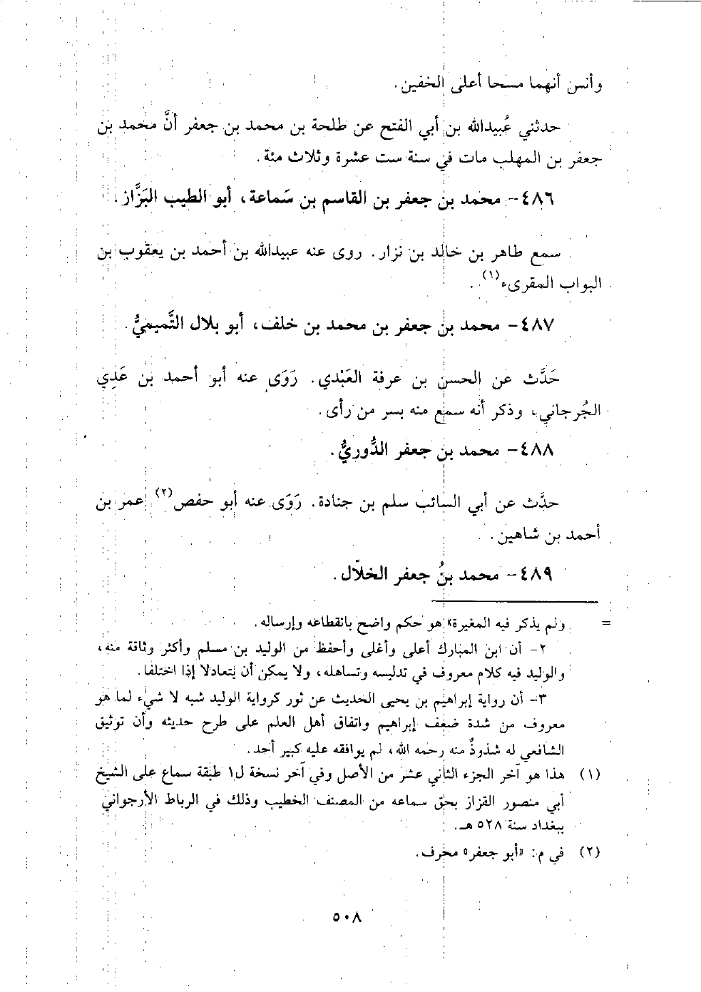 486 - محمد بن جعفر بن القاسم بن سماعه أبو الطيب البزاز سمع طاهر بن خالد بن نزار.