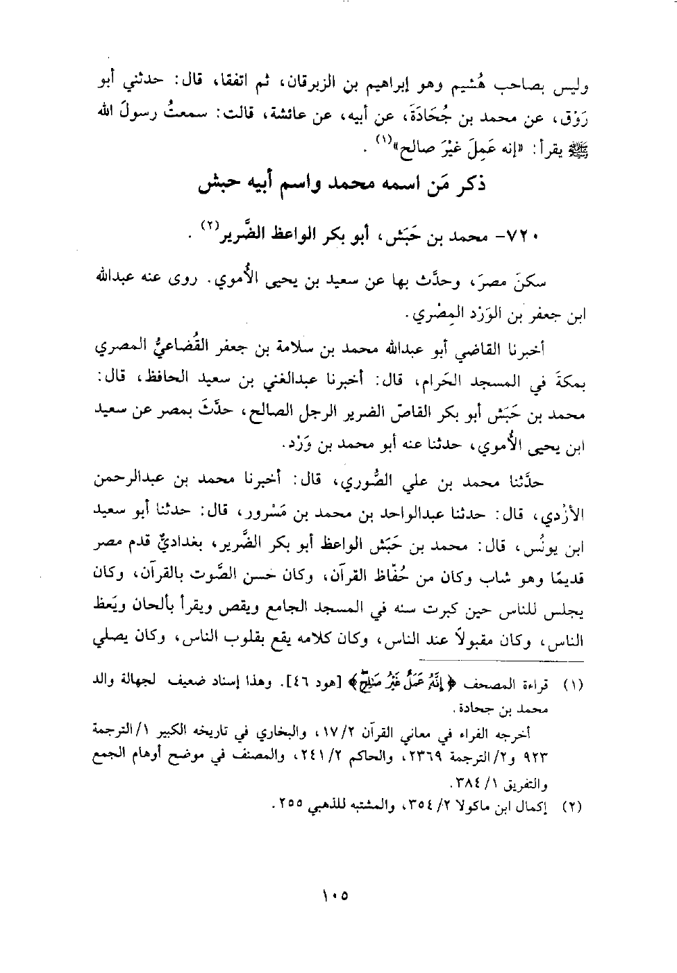 720 - محمد بن حبش أبو بكر الواعظ الضرير سكن مصر، وحدث بها عن: سعيد بن يحيى الأموي.
