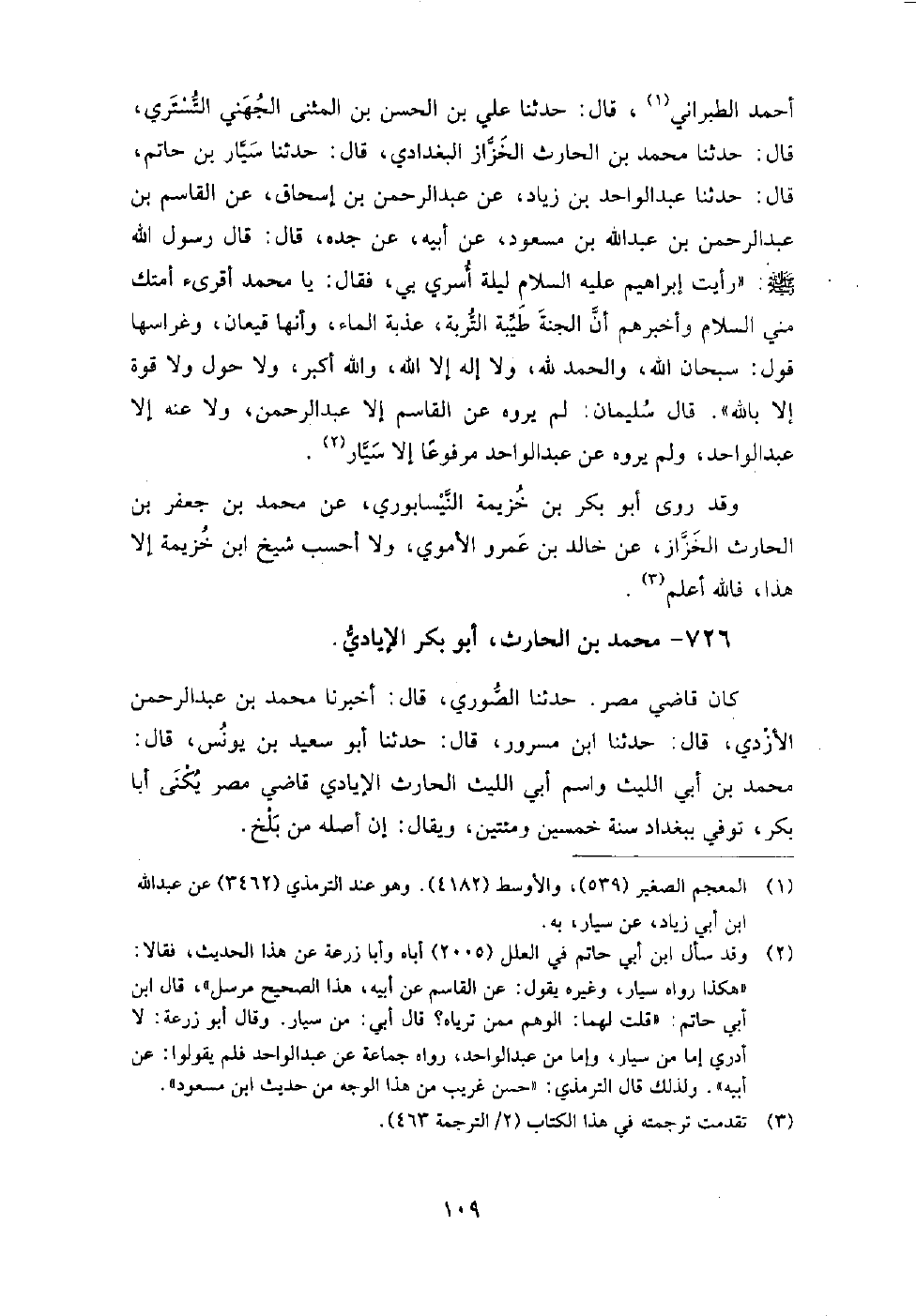حَدَّثَنَا الصوري، قَالَ: أَخْبَرَنَا محمد بن عبد الرحمن الأزدي، قَالَ: حَدَّثَنَا ابن مسرور، قَالَ: حَدَّثَنَا أبو سعيد بن يونس، قَالَ: محمد بن أبي الليث، واسم أبي الليث الحارث الإيادي قاضي مصر يكنى أبا بكر، توفي ببغداد سنة خمس ومائتين، ويقال: إن أصله من بلخ.