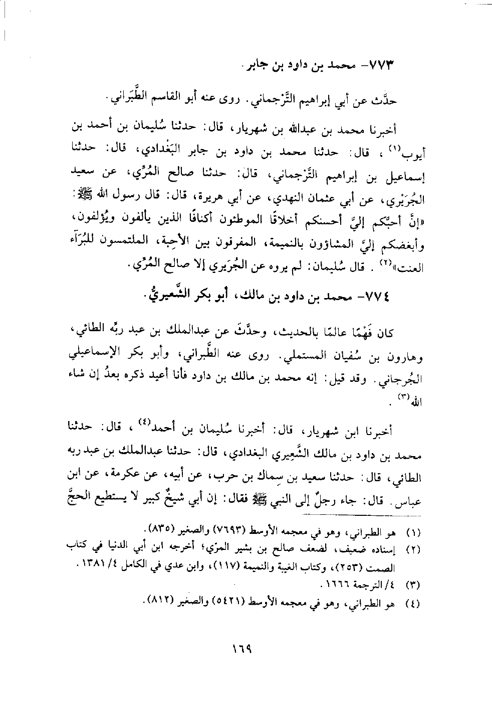 773 - محمد بن داود بن جابر حدث عن: أبي إبراهيم الترجماني، روى عنه: أبو القاسم الطبراني.