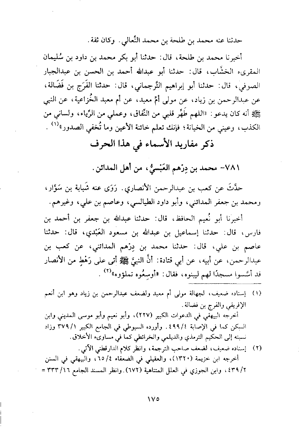 781 - محمد بن درهم العبسي من أهل المدائن، حدث عن: كعب بن عبد الرحمن الأنصاري، روى عنه: شبابة بن سوار، ومحمد بن جعفر المدائني، وأبو داود الطيالسي، وعاصم بن علي، وغيرهم.
