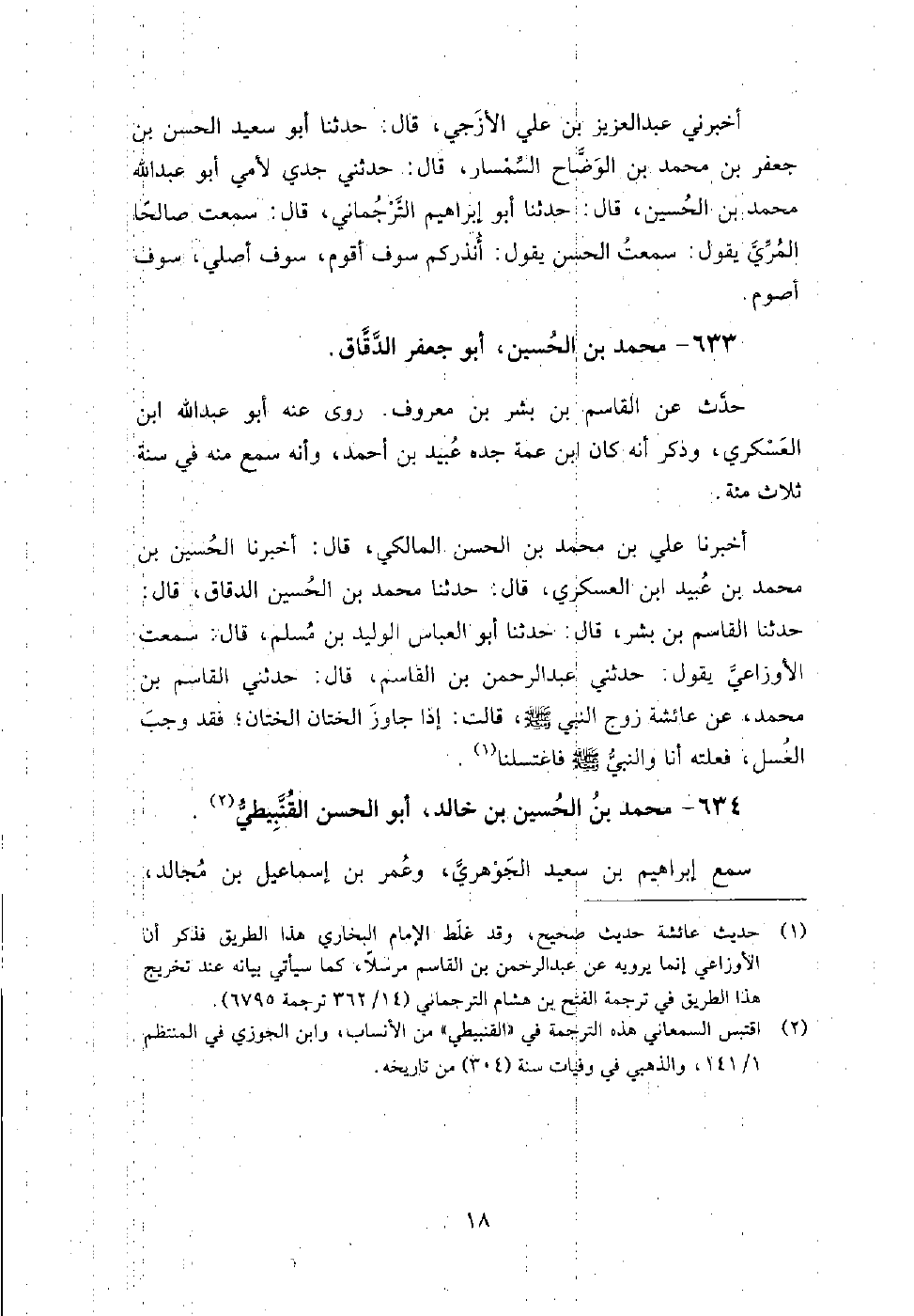634 - محمد بن الحسين بن خالد أبو الحسن القنبيطي سمع: إبراهيم بن سعيد الجوهري، وعمر بن إسماعيل بن مجالد، وإسحاق بن إبراهيم البغوي، والحسين بن علي الصدائي، ويعقوب بن إبراهيم الدورقي، ومحمد بن حسان الأزرق.
