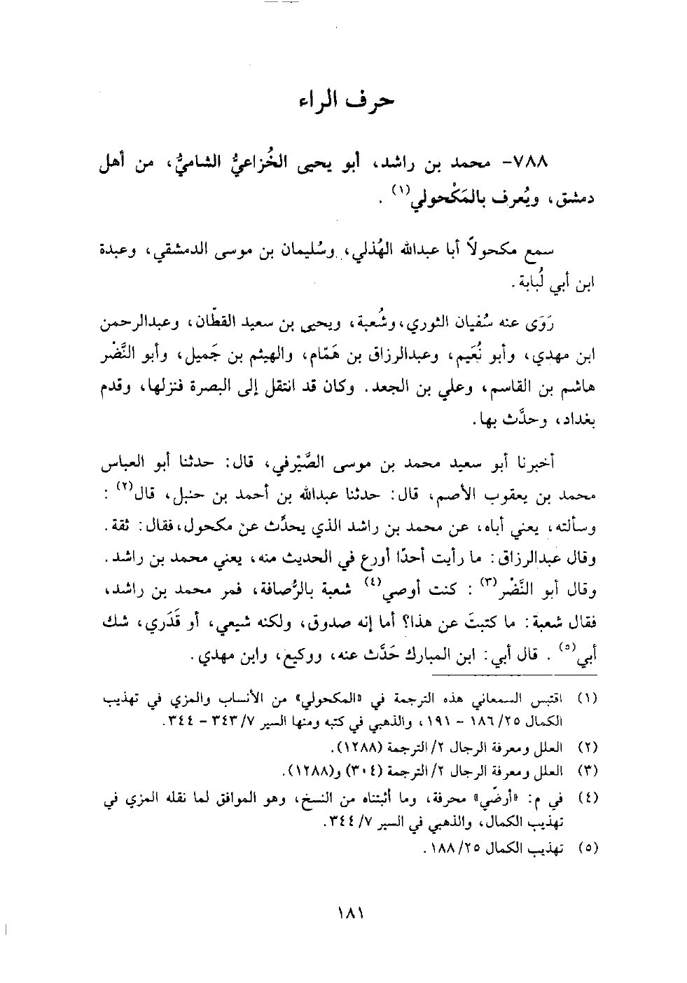 788 - محمد بن راشد أبو يحيى الخزاعي الشامي من أهل دمشق، ويعرف بالمكحولي، سمع: مكحولا أبا عبد الله الهذلي، وسليمان بن موسى الدمشقي، وعبدة بن أبي لبابة.