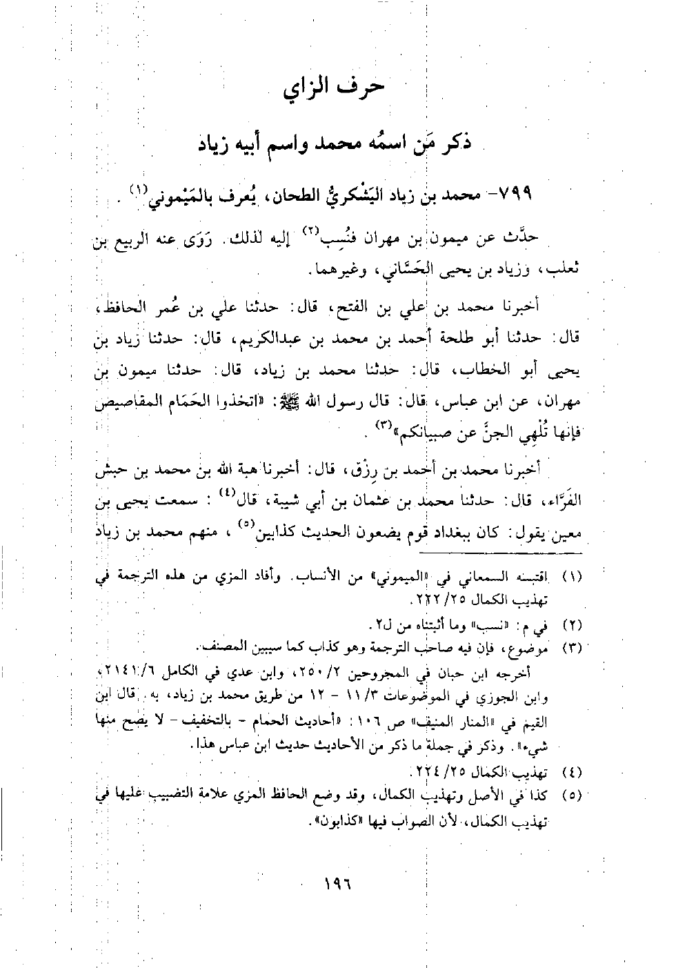 799 - محمد بن زياد اليشكري الطحان يعرف بالميموني حدث عن: ميمون بن مهران فنسب إليه لذلك.