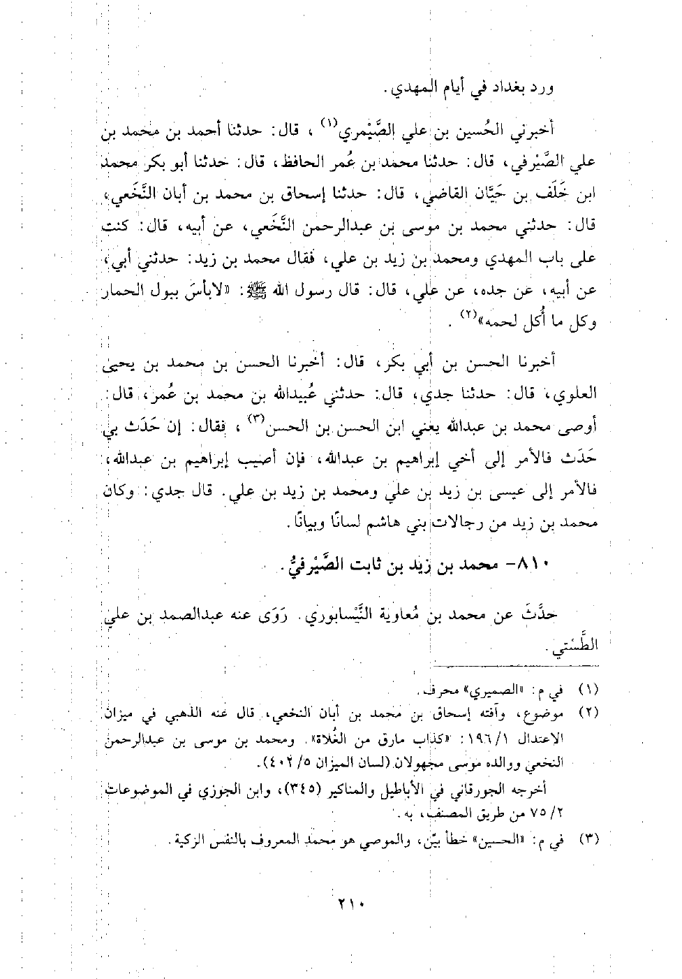 810 - محمد بن زيد بن ثابت الصيرفي حدث عن: محمد بن معاوية النيسابوري، روى عنه: عبد الصمد بن علي الطستي.