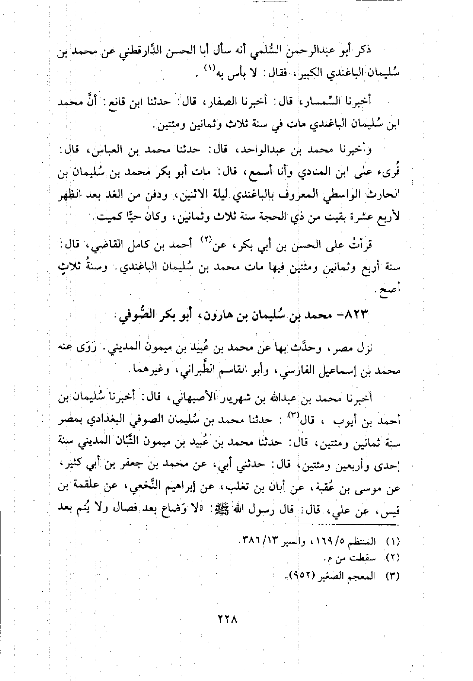 823 - محمد بن سليمان بن هارون أبو بكر الصوفي نزل مصر، وحدث بها عن: محمد بن عبيد بن ميمون المديني، روى عنه: محمد بن إسماعيل الفارسي، وأبو القاسم الطبراني، وغيرهما.