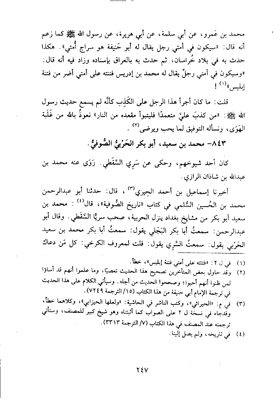 843 - محمد بن سعيد أبو بكر الحربي الصوفي كان أحد شيوخهم، وحكى عن: سري السقطي.