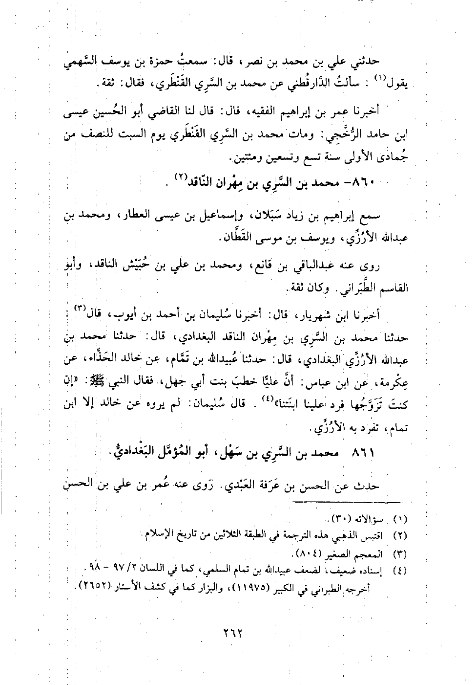 860 - محمد بن السري بن مهران الناقد سمع: إبراهيم بن زياد سبلان، وإسماعيل بن عيسى العطار، ومحمد بن عبد الله الأرزي، ويوسف بن موسى القطان.