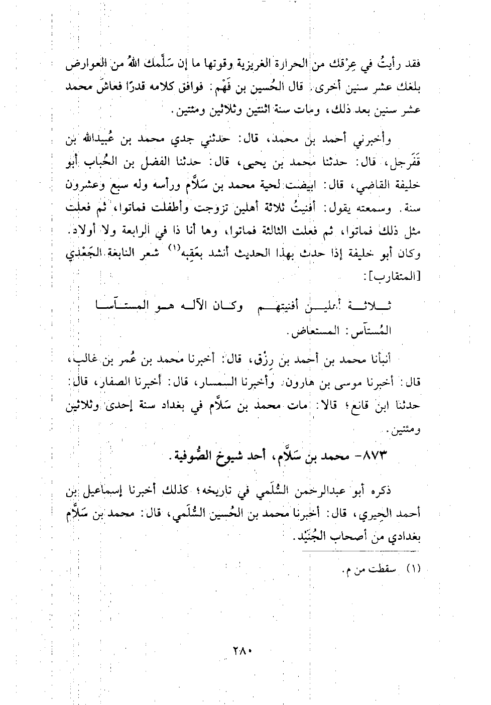 873 - محمد بن سلام أحد شيوخ الصوفية ذكره أبو عبد الرحمن السلمي في تاريخه، كذلك أَخْبَرَنَا إسماعيل بن أحمد الحيري، قَالَ: أَخْبَرَنَا محمد بن الحسين السلمي، قَالَ: محمد بن سلام بغدادي من أصحاب الجنيد.