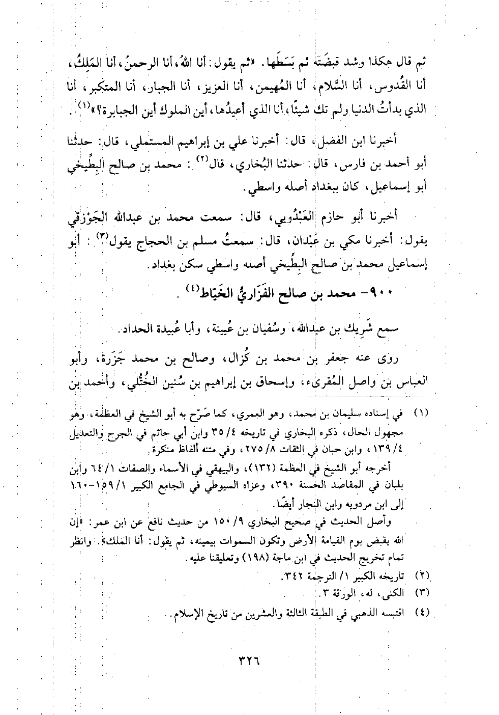900 - محمد بن صالح الفزاري الخياط سمع: شريك بن عبد الله، وسفيان بن عيينة، وأبا عبيدة الحداد.