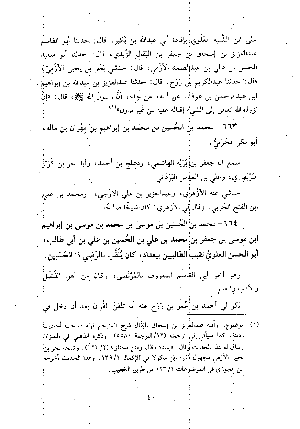 663 - محمد بن الحسين بن محمد بن إبراهيم بن مهران بن ماله، أبو بكر الحربي سمع أبا جعفر بن بريه الهاشمي، ودعلج بن أحمد، وأبا بحر بن كوثر البربهاري، وعلي بن العباس البرداني.