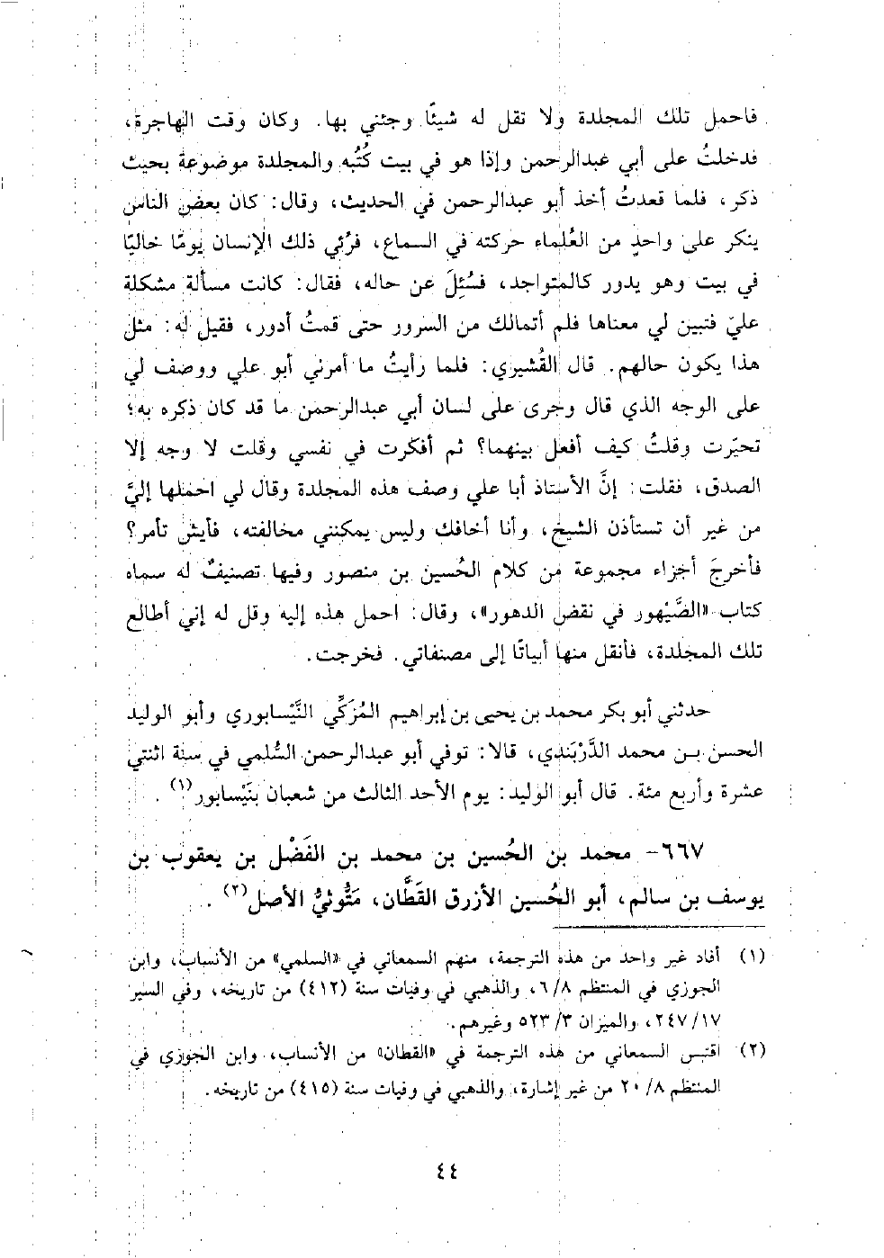 667 - محمد بن الحسين بن محمد بن الفضل بن يعقوب بن يوسف بن سالم أبو الحسين الأزرق القطان متوثي الأصل، سمع: إسماعيل بن محمد الصفار، ومحمد بن يحيى بن عمر بن علي بن حرب، وأبا عمرو ابن السماك، وأحمد بن سلمان النجاد، وعبد الله بن جعفر بن درستويه، وأبا الحسين بن ماتى الكوفي، وجعفرا الخلدي، وأبا سهل بن زياد، ومحمد بن الحسن النقاش، وحمزة بن محمد العقبي، وأحمد بن عثمان ابن الأدمي، في أمثالهم.