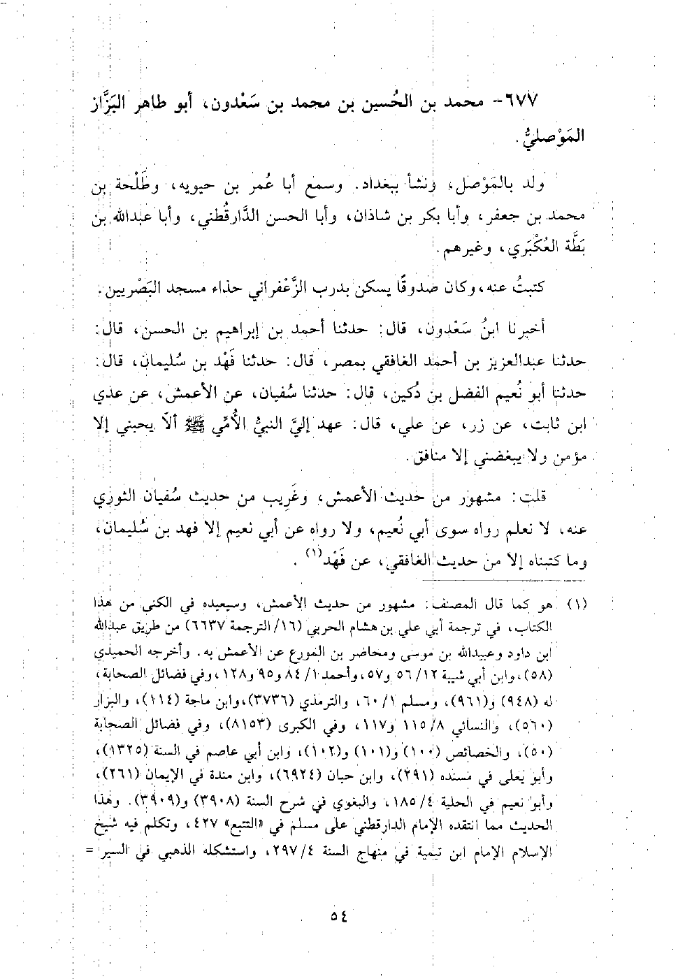 677 - محمد بن الحسين بن محمد بن سعدون أبو طاهر البزاز الموصلي ولد بالموصل، ونشأ ببغداد، وسمع أبا عمر بن حيويه، وطلحة بن محمد بن جعفر، وأبا بكر بن شاذان، وأبا الحسن الدارقطني، وأبا عبد الله بن بطة العكبري، وغيرهم.