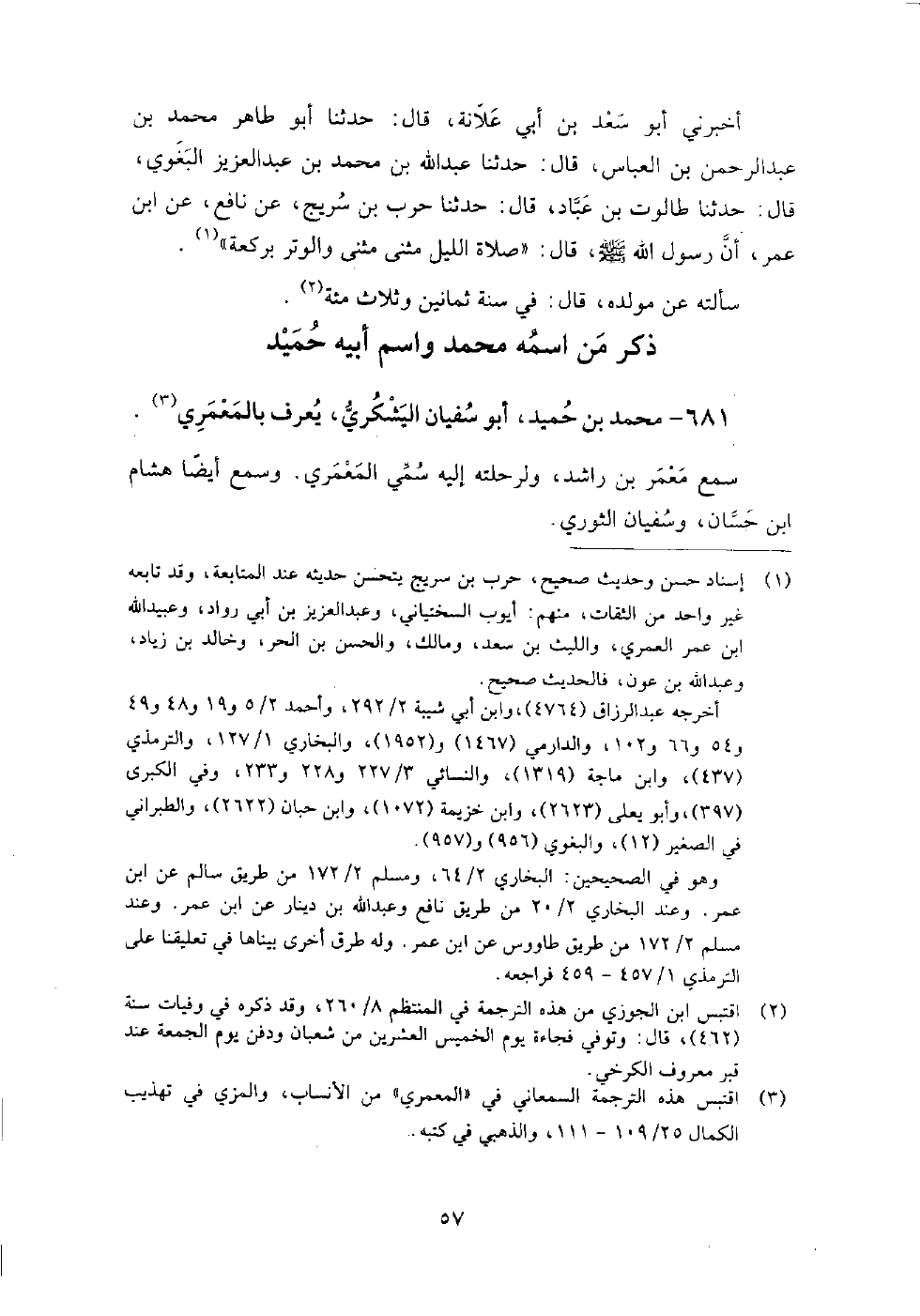 681 - محمد بن حميد أبو سفيان اليشكري يعرف بالمعمري سمع: معمر بن راشد، ولرحلته إليه سمي المعمري، وسمع أيضا: هشام بن حسان، وسفيان الثوري.