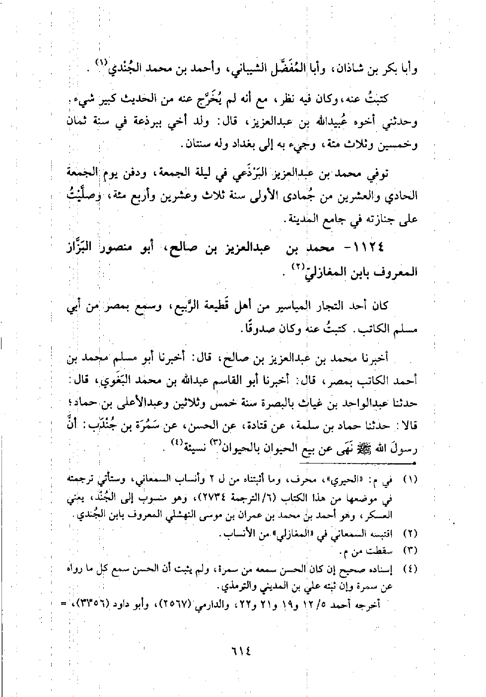 1124 - محمد بن عبد العزيز بن صالح أبو منصور البزاز المعروف بابن المغازلي كان أحد التجار المياسير من أهل قطيعة الربيع، وسمع بمصر من: أبي مسلم الكاتب.